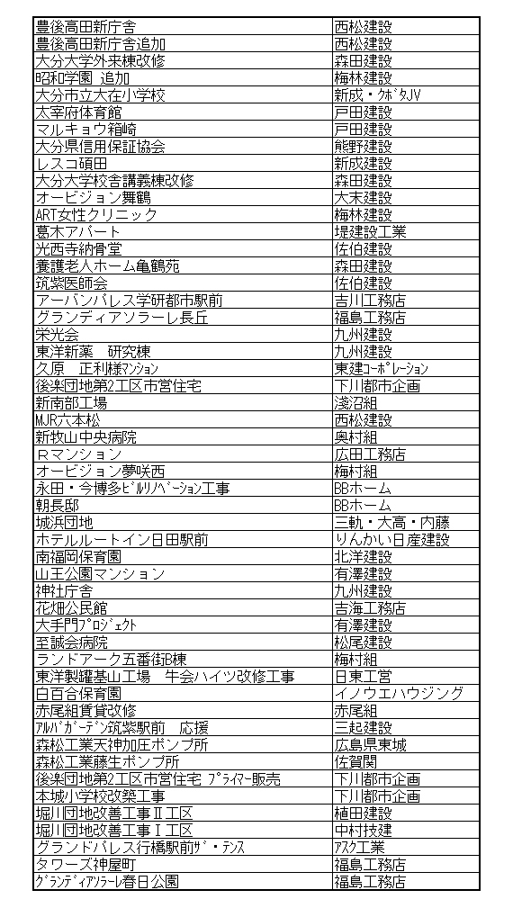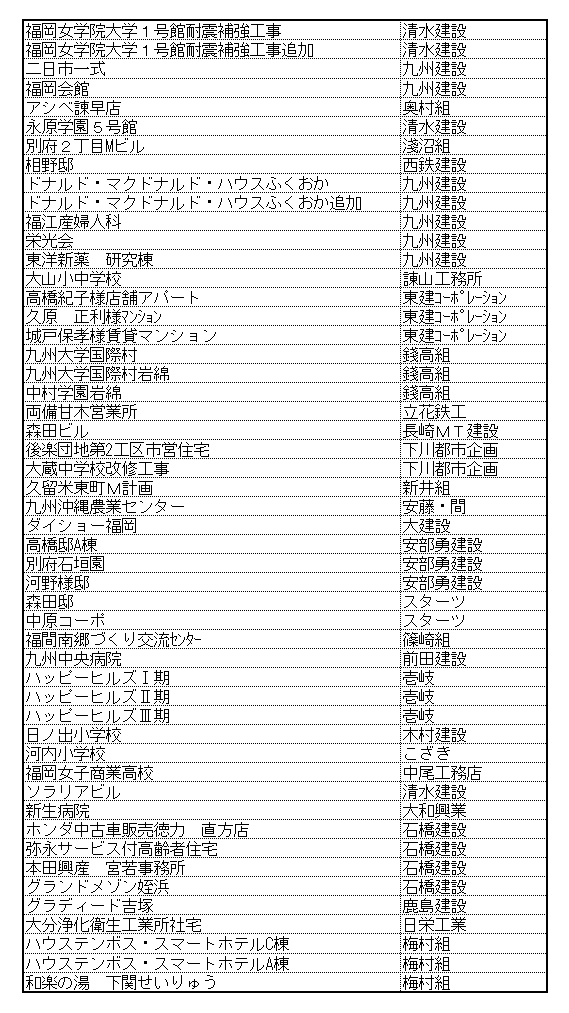 施工実績 2015年4月~2016年3月 2014 年 4月~2015年3月 2013 年 4月~2014年3月 2012 年 4月~2013年3月 2011年 4月~2012年3月 施工例-木造 施工例-建築 施工実績 低温倉庫 エコリフォーム スプレー工法