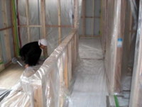 冷房や暖房の効率を高めるために断熱材の吹きつけの工事を等を行っています。